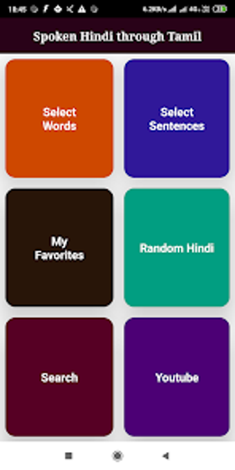 Spoken Hindi through Tamil é um aplicativo educativo gratuito disponível para Android, projetado para ajudar usuários a aprender a língua hindi através do idioma tamil. Com um acervo de mais de 400 palavras e 200 frases em hindi, o aplicativo oferece áudio claro para cada termo, facilitando a pronúncia e a compreensão. Os usuários podem explorar uma interface intuitiva, que permite a busca fácil de palavras e frases, promovendo um aprendizado acessível e eficiente.